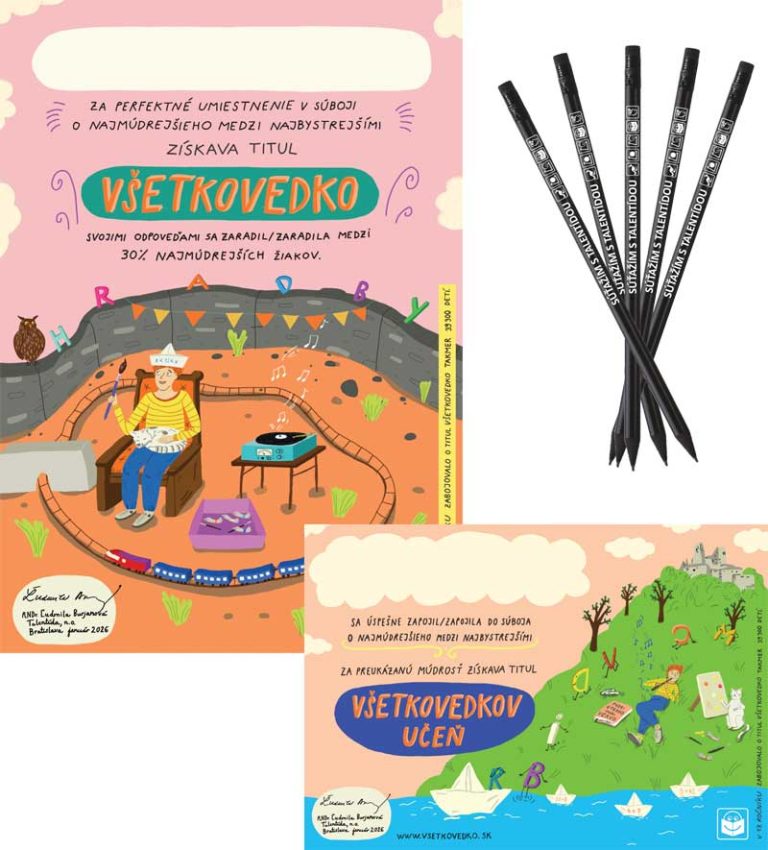 Diplomy pre Všetkovedkov Súťaž Všetkovedko sa blíži do finále. Všetko je vyhodnotené, Všetkovedko usilovne balí diplomy a ceny. Najúspešnejší súťažiaci sa budú môcť
