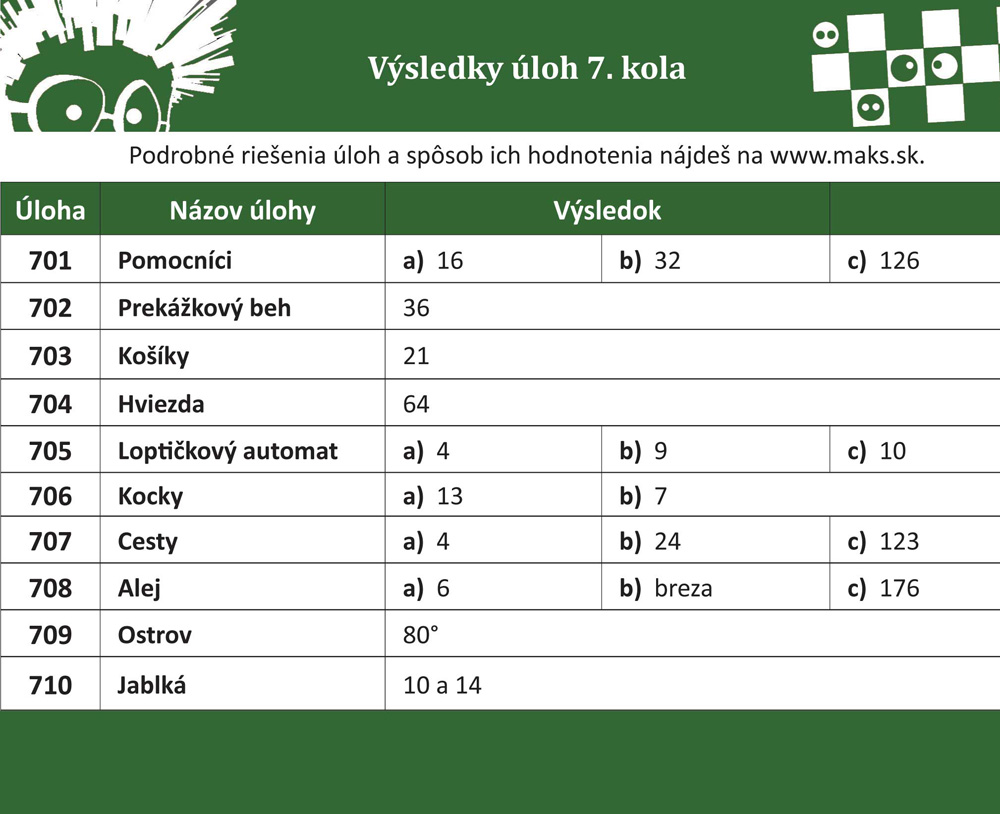 Usilovne pracujeme na vyhodnotení Vašich odpovedí. Kým sa dozviete, koľko bodov ste získali za jednotlivé úlohy, pozrite si aspoň správne odpovede.